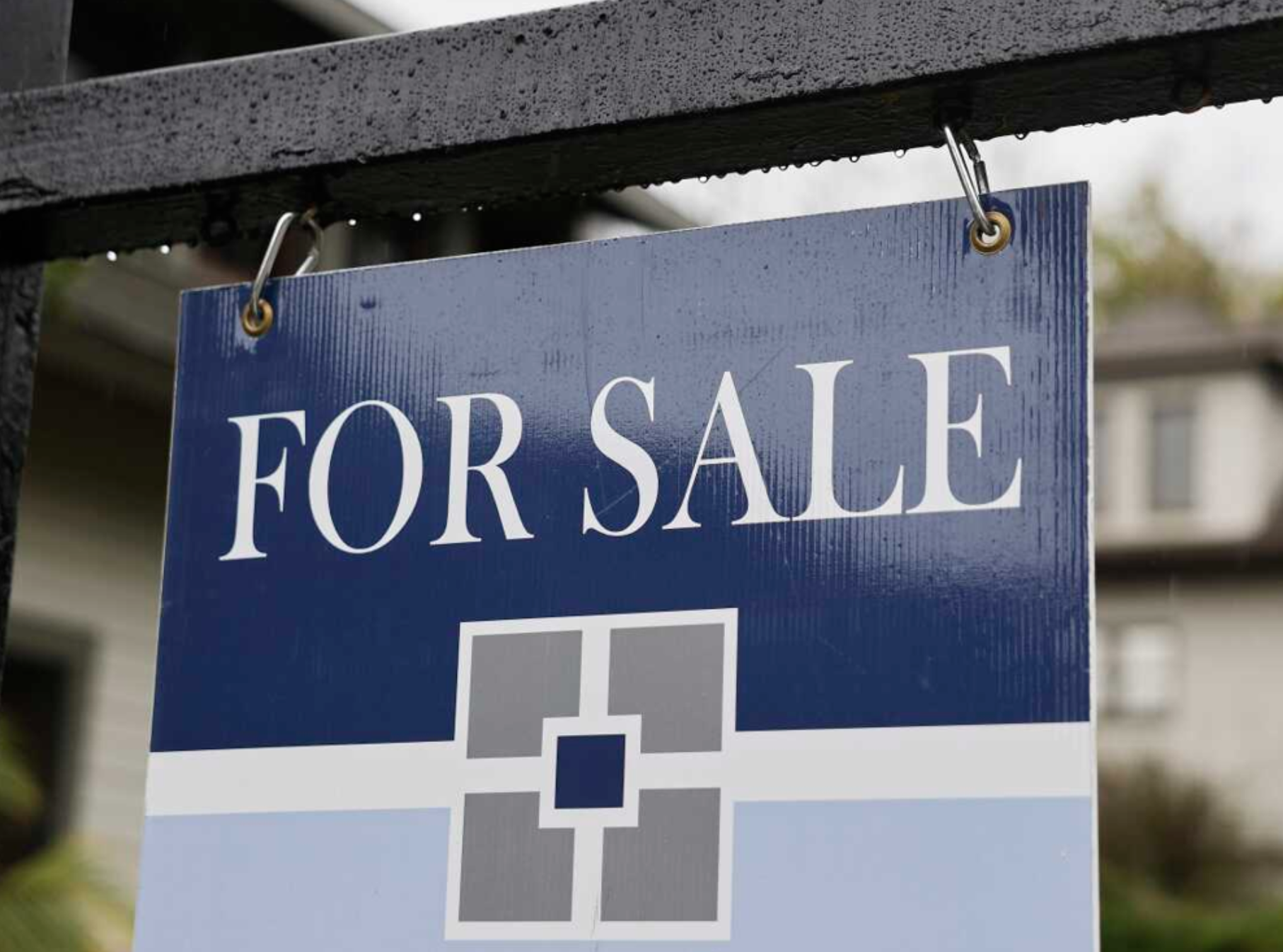 미국 주택 매물 앞에 세워진 '판매 중(For Sale)' 안내 표지. 2025년 봄철, 주택 시장에 매물이 늘어나고 있지만 높은 금리와 가격으로 매수자들의 관망세가 지속되고 있다.
